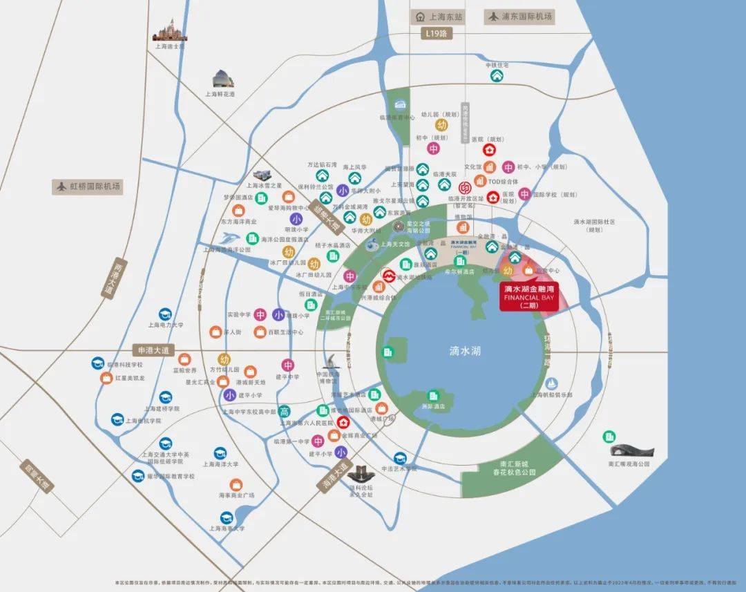 冰厂田临港幼儿园、方竹幼儿园、上海中学东校、临港第一中学、上海市实验中学、建桥国际高中、建平临港中学、耀际教育学校