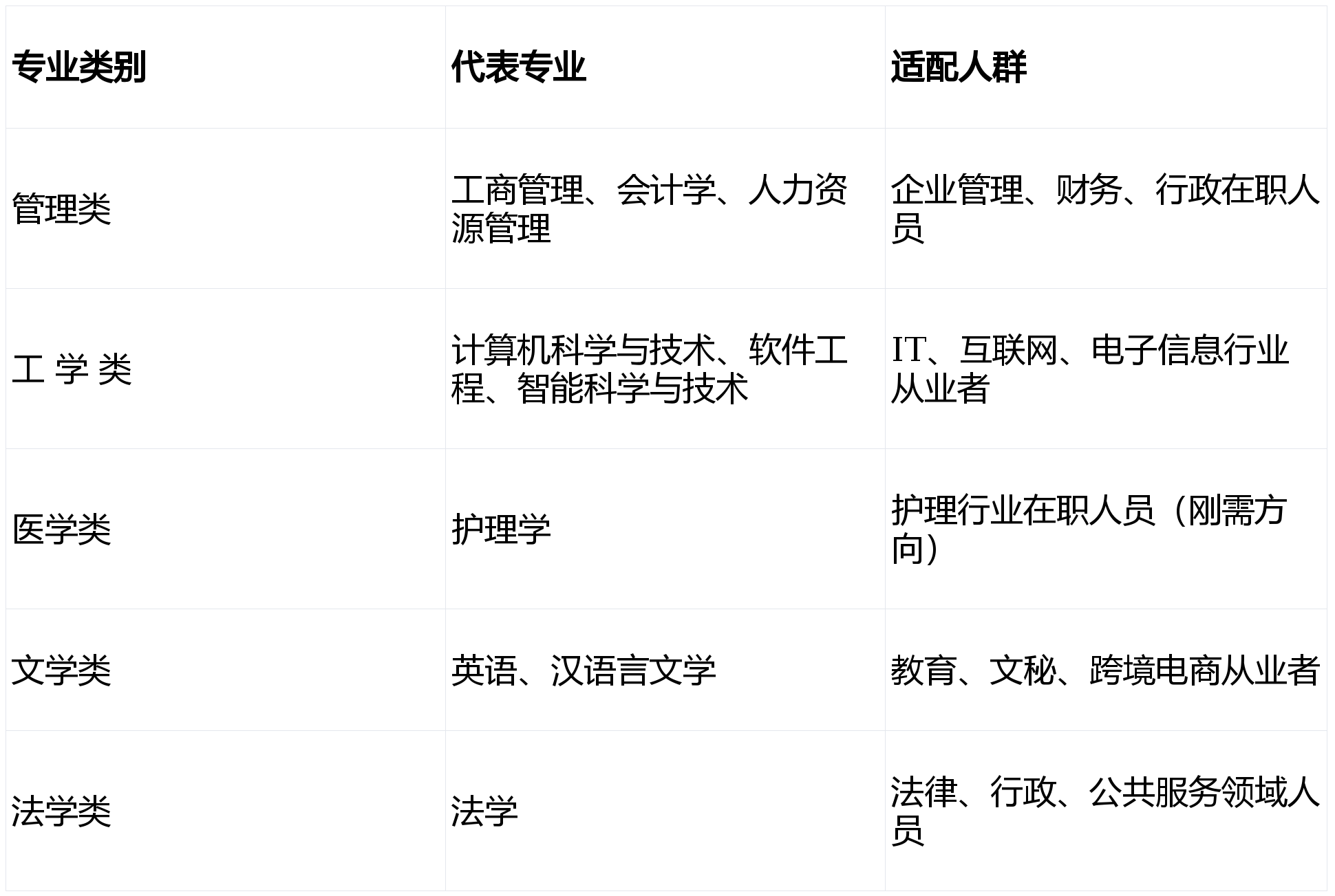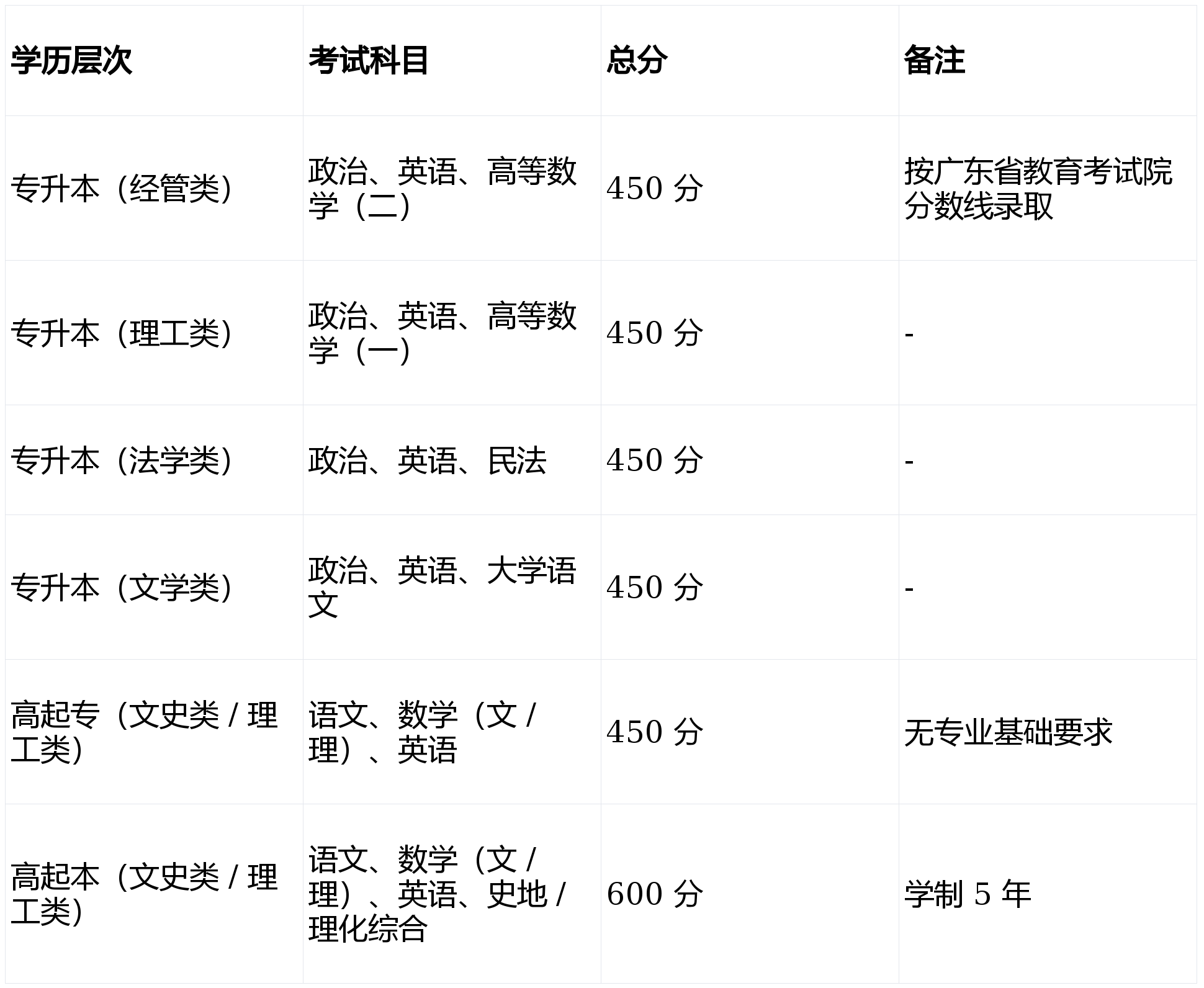 :面向广东省,专业覆盖管理学、工学、法学、文学、医学等门类,适配不同职场人群。