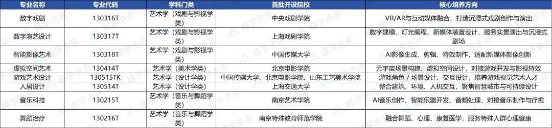 据教育部专业设置备案数据统计,2020-2024年全国共有86所高校新增数字媒体艺术本科专业,该专业融合艺术设计与数字技术,培养数字内容创作与新媒体设计领域复合型人才,契合文化创意产业发展趋势。此外,教育部公布的2025年本科专业目录新增的8个艺术类专业:舞蹈治疗、音乐科技、数字戏剧、数字演艺设计、智能影像艺术、虚拟空间艺术、人居设计、游戏艺术设计,更凸显“艺术+科技”的融合趋势。