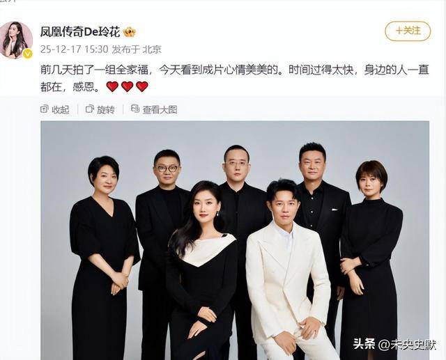 工作室同步发布了一张全家福照片,玲花和曾毅并肩而坐,身边围绕着团队工作人员,两人状态轻松,笑容温和。