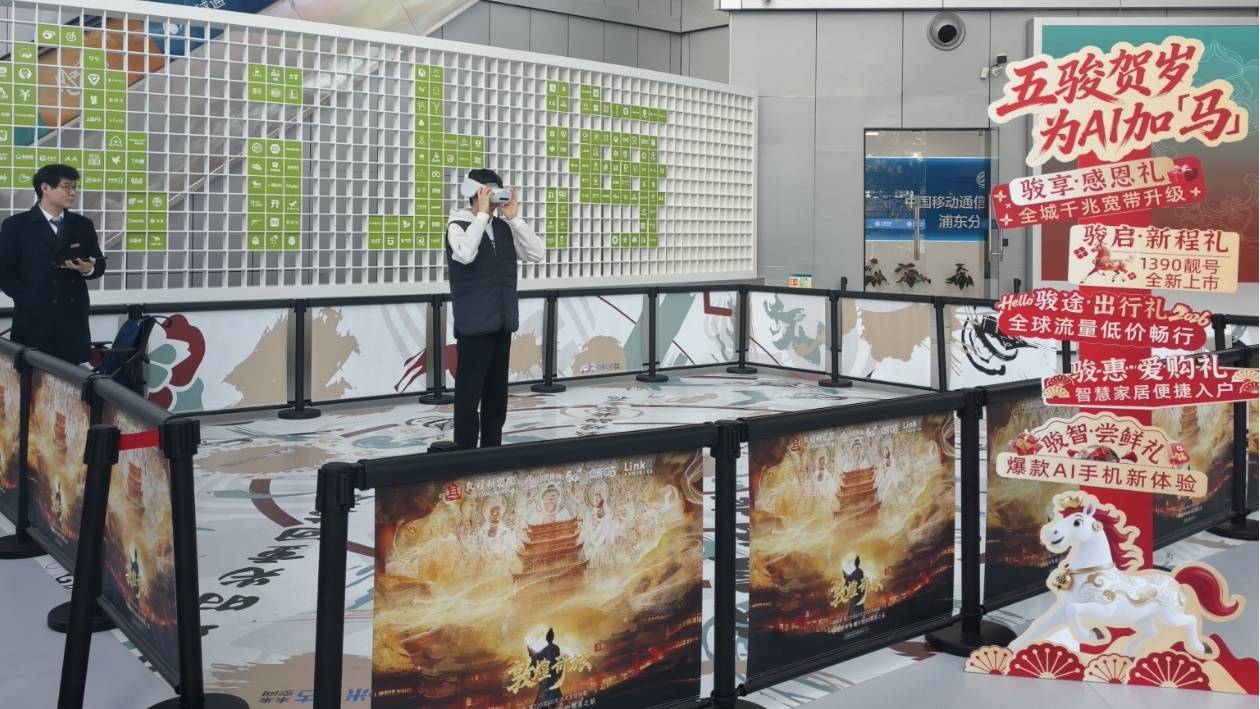 浦东民生路旗舰店,这间荣获第八届进博会“最美服务窗口”的数字体验空间,在新春化身“AI科技年味乐园”。一楼“AI乐园”展厅里,市民游客沉浸式体验AI智慧居家场景,在“上海时空照相馆”穿越时光打卡留念,借助XR技术身临其境领略敦煌壁画的千年魅力,科技与文化的碰撞,让新春体验别具新意;二楼营业厅新春特别活动暖心开启,打卡互动赢好礼,让数字体验更添节日喜悦。长宁的全国首家“5G-A移动申花联名厅”,则是申花球迷与科技爱好者的新春打卡地,AI合影、4K超高清观赛、申花主题咖啡、新春限定周边,数字科技与体育文化深度融合,新春“不打烊”的蓝血空间,让年味与热爱双向奔赴。而在上海四平电影院,市民看完贺岁大片后,还能走进全市首家“飞夺泸定桥”主题XR数智党建大空间,佩戴专业设备沉浸式走进峥嵘岁月,从“观看历史”到“走进历史”,让红色年味在数智赋能中直抵人心。