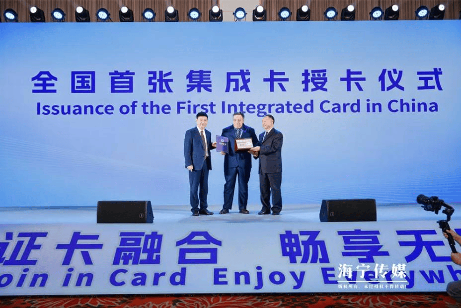 12月3日,外国人工作许可证和社会保障卡融合集成改革成果发布暨全国首张集成卡发放仪式在海宁举办,来自美国、法国、印度、埃塞俄比亚等11个国家和地区的外国专家代表领到了第一批“聚英卡”。