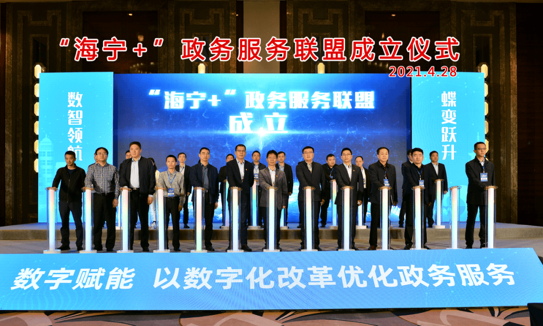 4月28日,海宁市举行“海宁+”政务服务联盟成立仪式,与12省33县市区正式组建“海宁+”政务服务联盟。