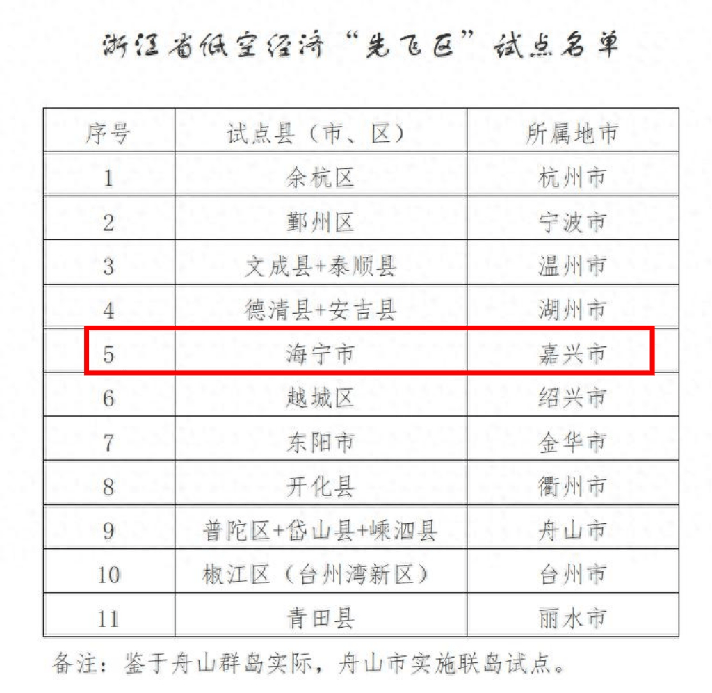 4月,浙江省低空经济“先飞区”试点确定名单公示,全省15个县(市、区)上榜,海宁作为嘉兴市唯一一个入选城市。