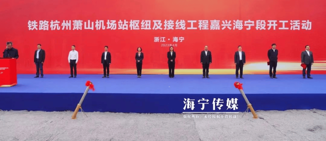 4月14日,举行杭州机场高铁项目海宁段开工仪式,该项目是杭州新一轮铁路枢纽“一轴两翼”布局中的东翼通道,海宁段新建线亿元。