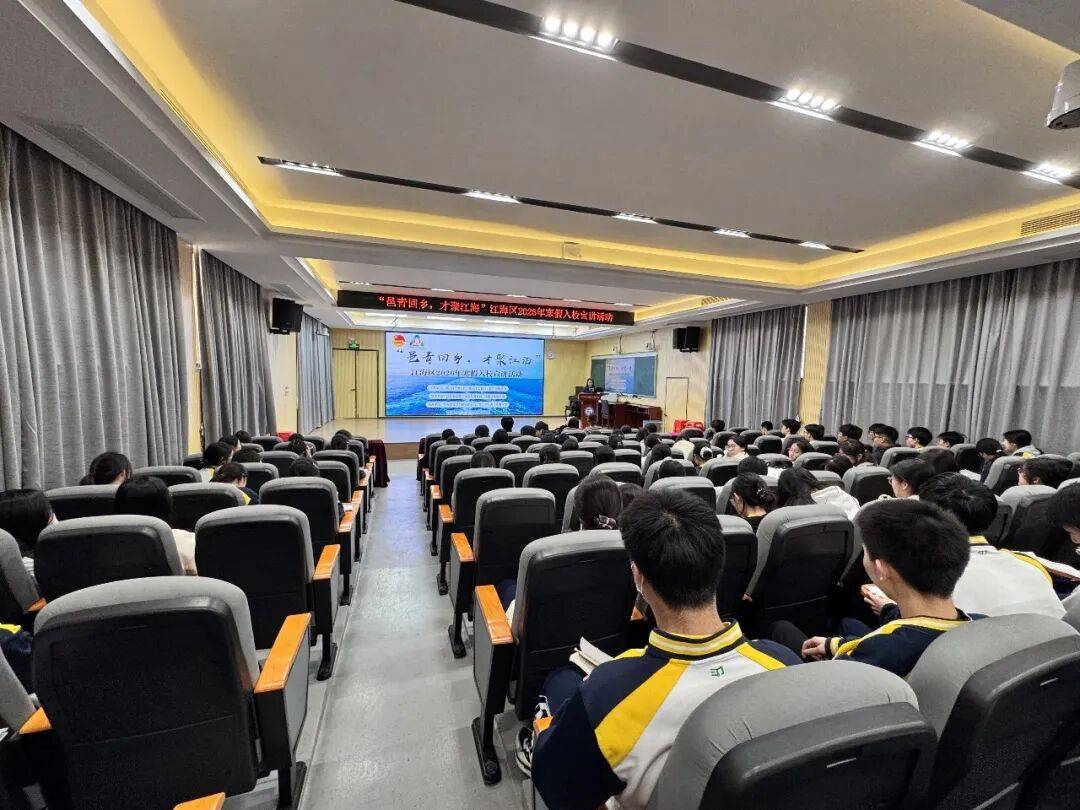 为扎实推进人才倍增工程,营造“家乡广纳英才,英才反哺家乡”的良好氛围,1月28日,江海团委联合区委组织部、区教育局、区大学生成长促进会在外海中学举办2026年“邑青回乡,才聚江海”寒假入校宣讲活动,江海籍优秀大学生与200多名外海中学高三学子齐聚一堂,以青春之声传递成长力量,用榜样之光点亮少年追梦之路。